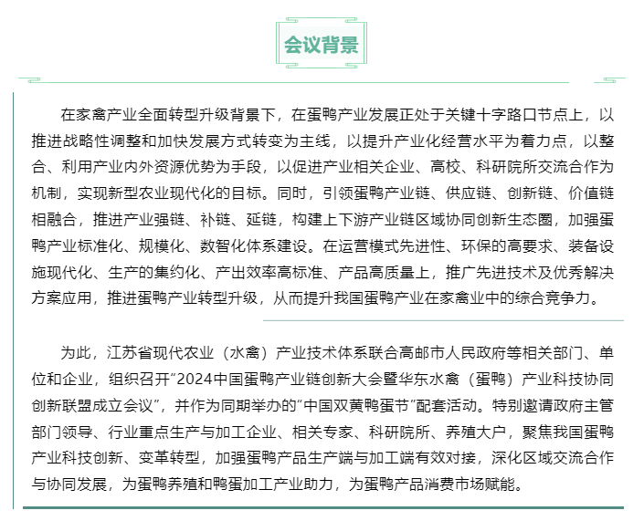 2024中國蛋鴨產(chǎn)業(yè)鏈創(chuàng)新大會暨華東水禽(蛋鴨)產(chǎn)業(yè)科技協(xié)同創(chuàng)新聯(lián)盟成立會議